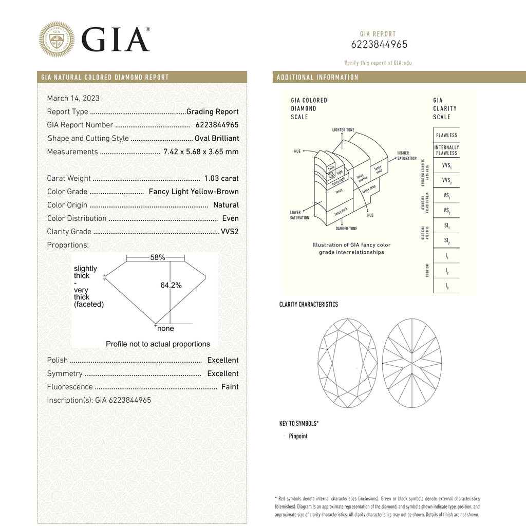 1.03ct 7.42x5.68x3.65mm GIA VVS2 Fancy Yellow-Brown Oval Brilliant 23827-01