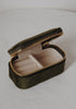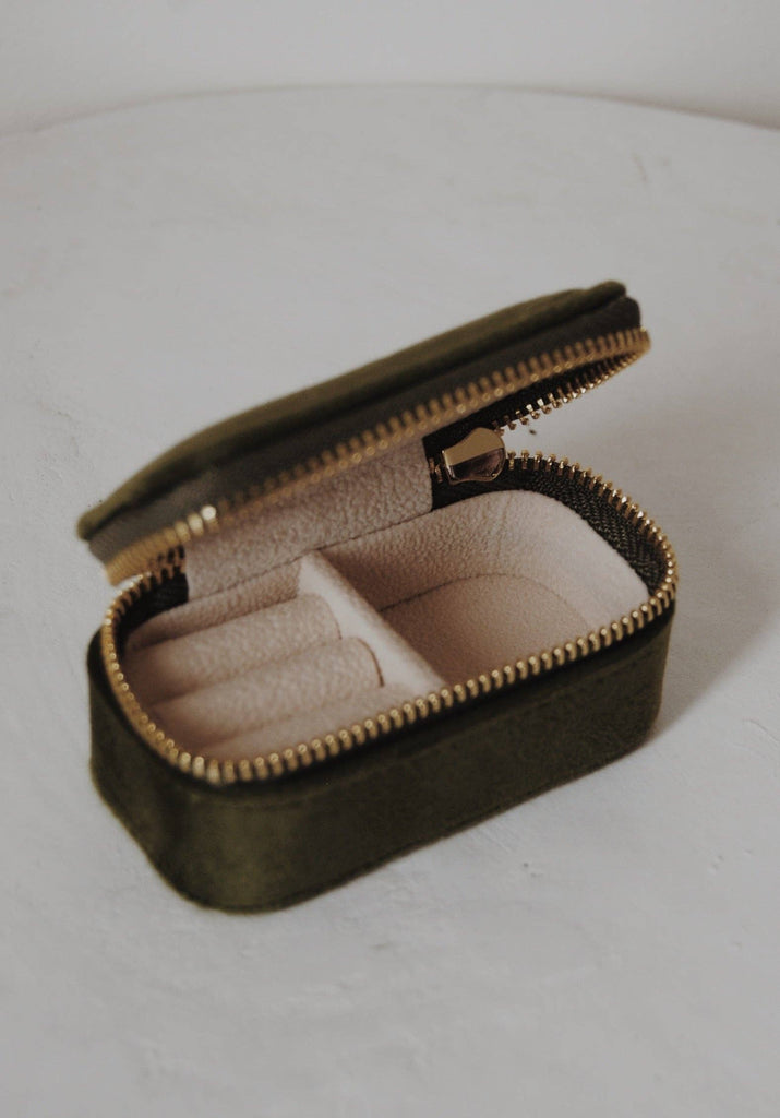- rectangle jewelry box with velveteen interior lining and velvet exterior