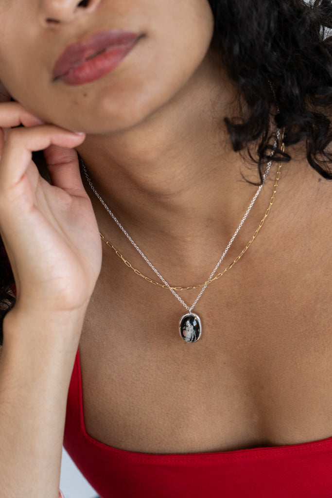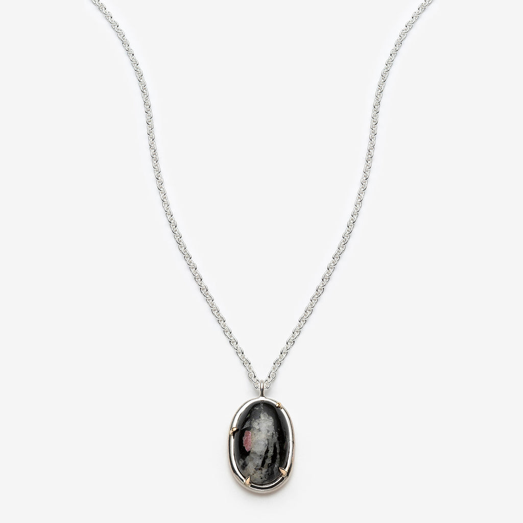 - Gemsilica, noir avec des taches roses et grises, 12,25ct., 18,5mm x 12mm, cabochon ovale, d'origine éthique, Canada