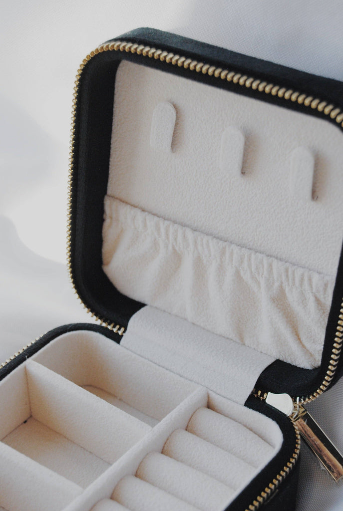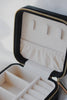 - l'intérieur comprend des crochets pour colliers, une pochette, des séparateurs amovibles et un compartiment pour bagues