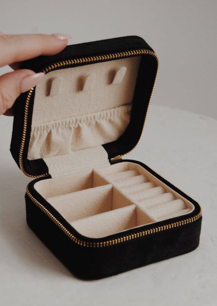 - boîte à bijoux carrée avec doublure intérieure en velours côtelé et extérieur en velours