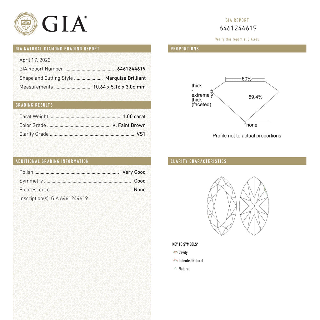1.00ct 10.64x5.16x3.06mm GIA VS1 KM Marquise Brilliant🇨🇦 25223-01