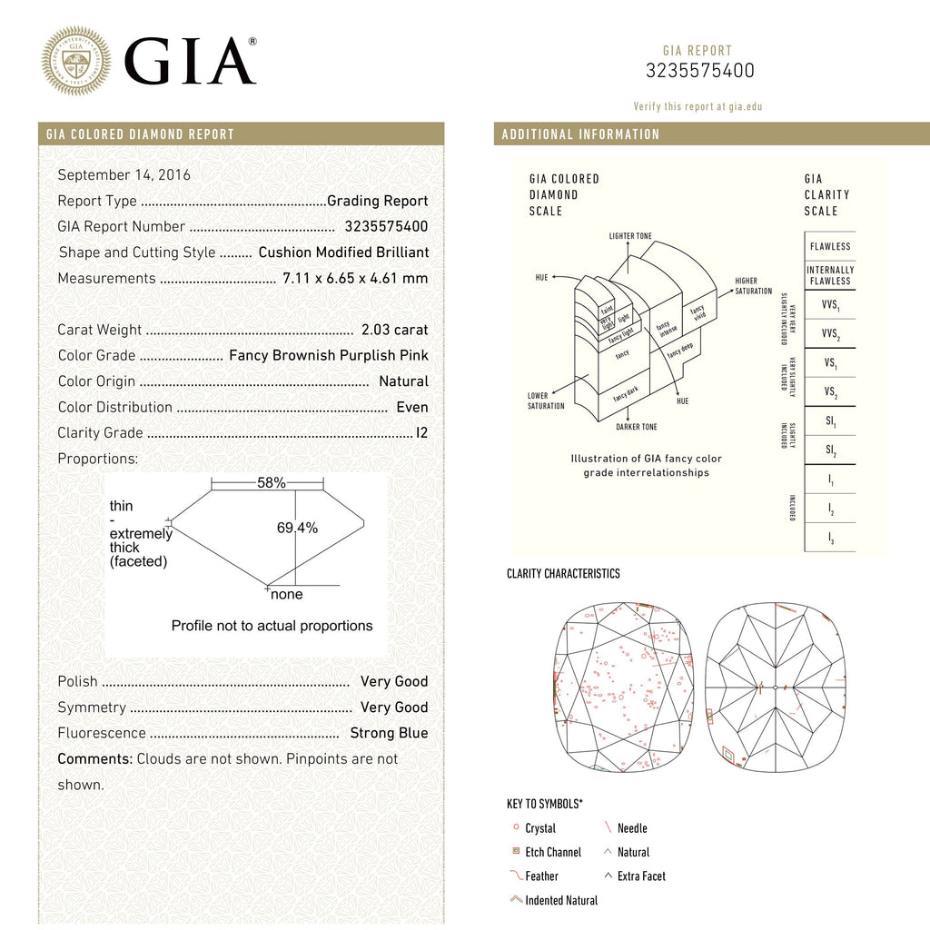 GIA Fancy Brownish Purplish Pink Cushion Brilliant