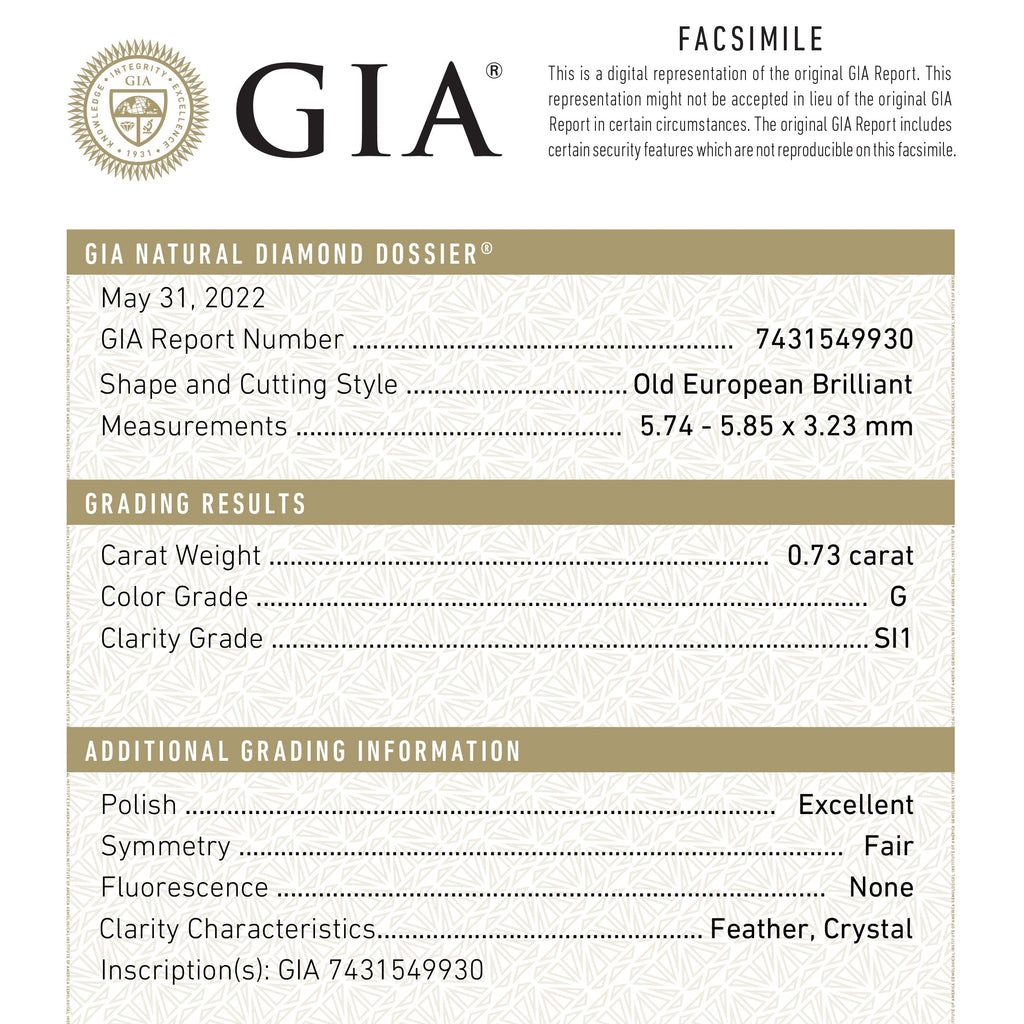 0.73ct 5.74x5.85x3.23mm GIA SI1 G Antique Old European Cut 22480-01