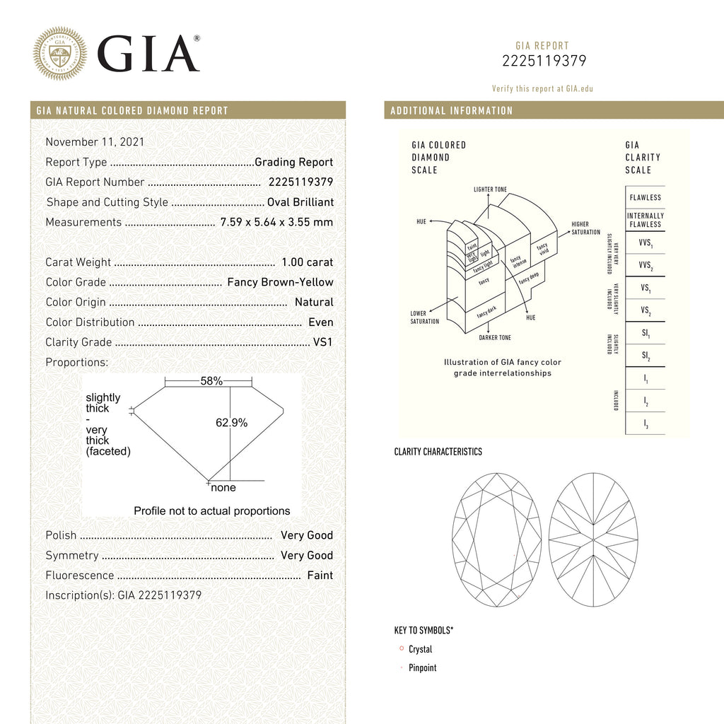 1.00ct 7.59x5.64x3.55mm GIA VS1 Champagne Oval Brilliant 21599-01